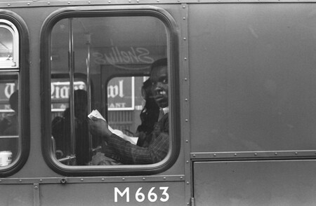Дэвид Соломонс, Без названия, Великобритания, 1989-1995. Вагоны транспорта формируют две реальности: внутреннюю и наружную.