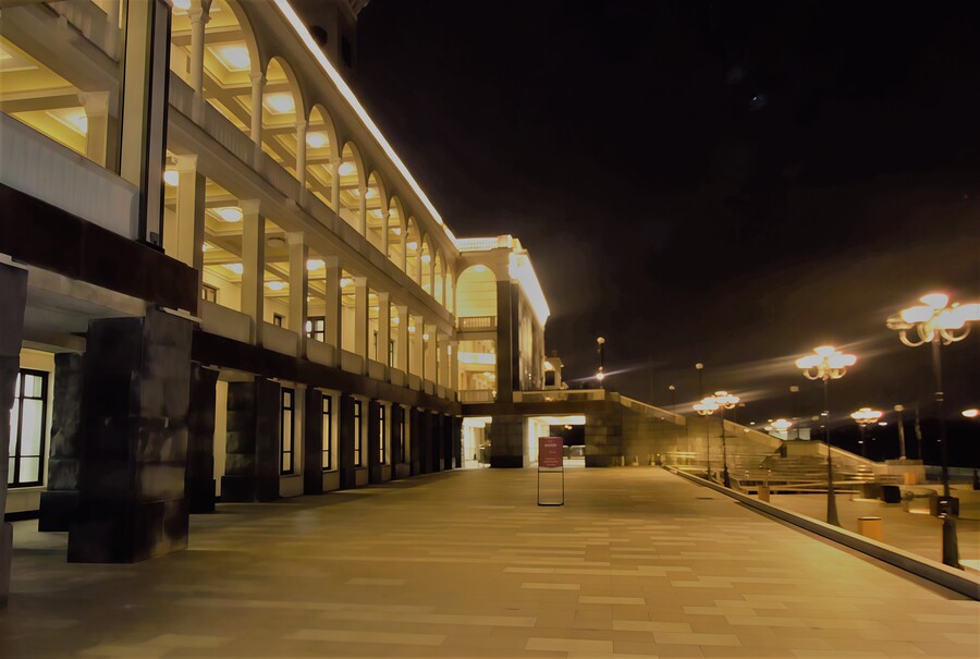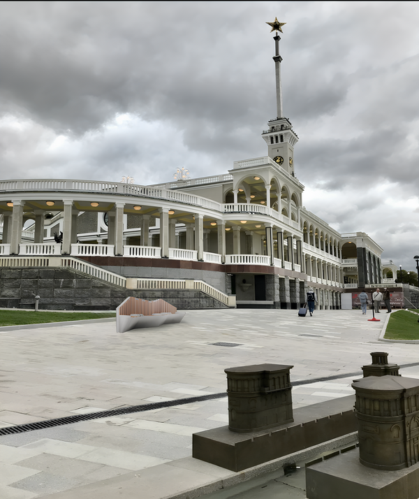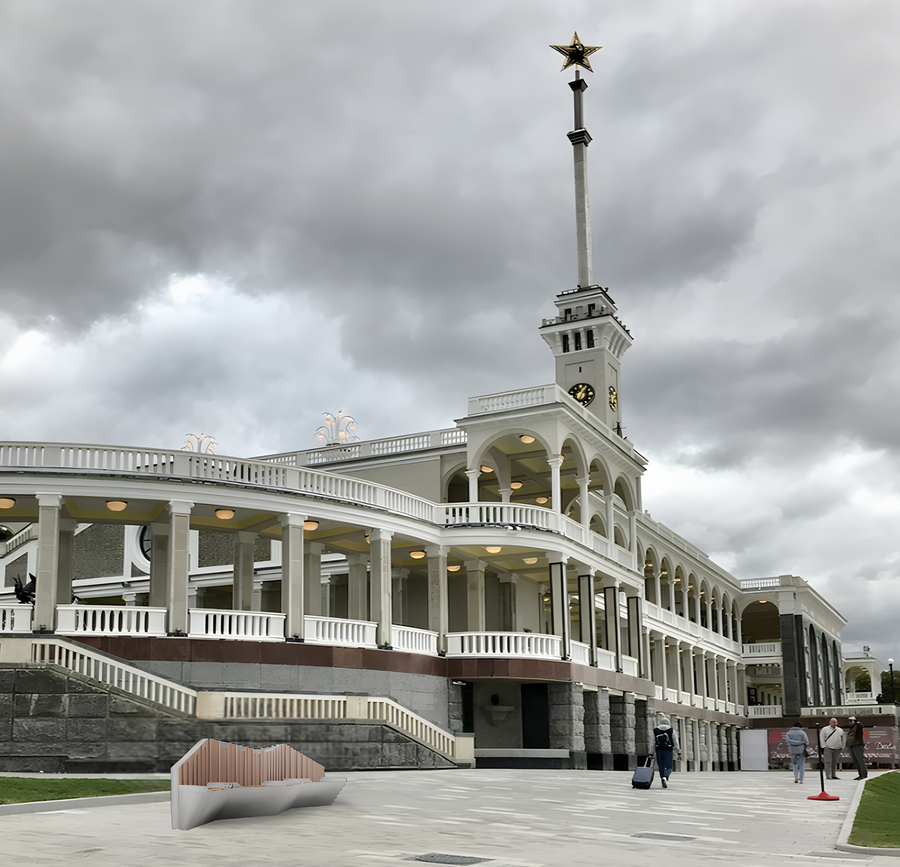Анализируемая часть — это главная пешеходная зона у здания Северного речного вокзала, примыкающая к набережной. Участок активно используется как транзитная зона и место ожидания с доступом ко входам на первый этаж и выходом на променад.