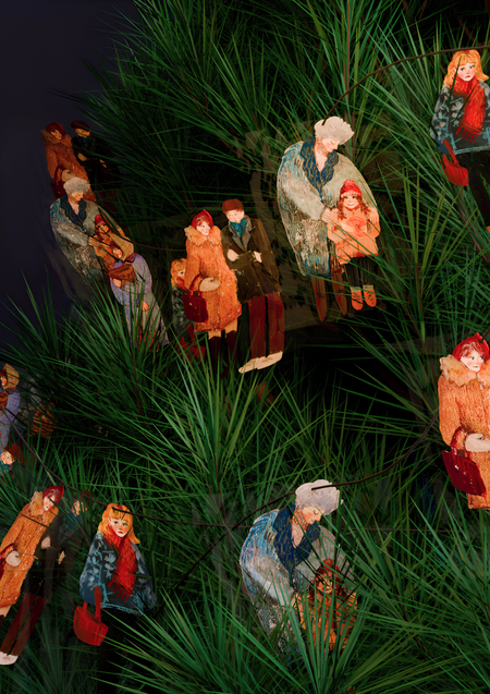 Это новогодняя гирлянда с персонажами из моего лонгрида о советском дефиците. За счет чередования они выстраиваются в образ очереди, ключевой для моего проекта.