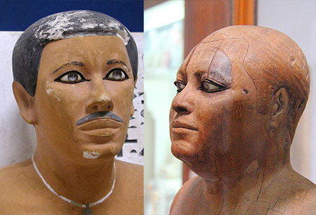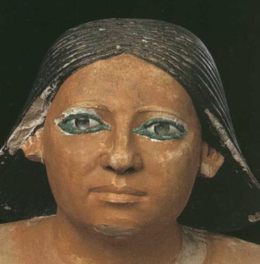 В период Древнего Царства в Египте также создается множество деревянных статуй членов царской семьи и знатных чиновников. Эти статуи привлекают внимание зрителя очень необычным подходом к конструкции глаза скульптуры.
