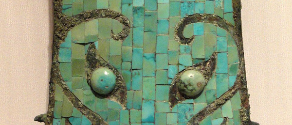 Инкрустированные бирюзой таблички со стилизованной маской животного, культура Эрлитоу, Китай, 1900-1350 гг. до н. э.