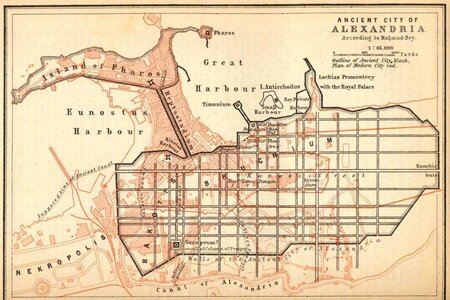 1 — южный рынок; 2 — западный рынок; 3 — гимнасий; 4 — стадион; 5 — булевтерий (здание городского управления); 6 — театр; 7 — храм Афины; 8 — храм Сараписа; 9 — нимфеум.