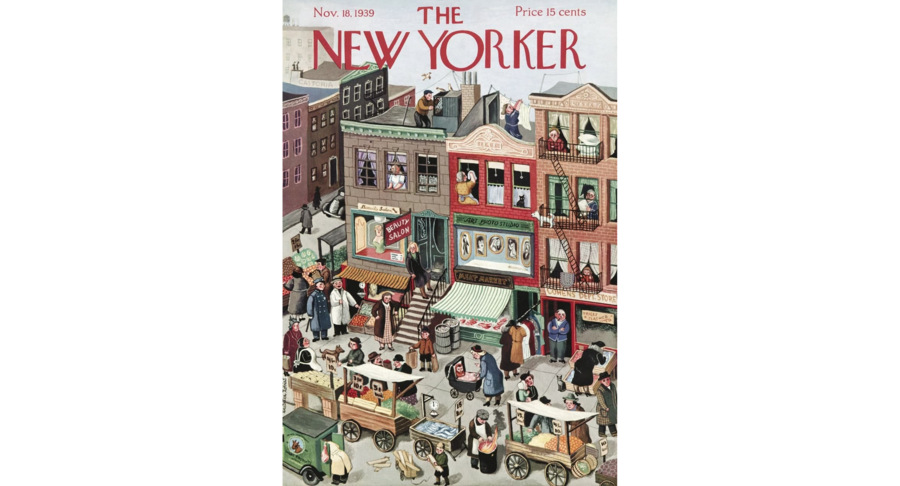 Внизу, вдали от вершин небоскребов Нью Йорка кипит обычная жизнь со своими проблемами. Многие обложки The New Yorker иллюстрируют толпы людей, бег прохожих и рутину мегаполиса.