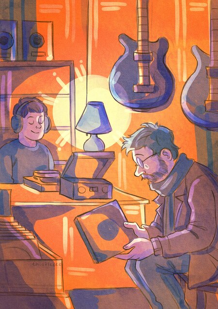 Два лучших друга гитариста со школьных лет мечтали открыть свой музыкальный магазин, и когда они повзрослели, им это удалось. Это не сеть магазинов, но уютный небольшой магазинчик со всем, что может заинтересовать музыканта. Магазин называется «Грани», как и дуэт двух друзей, что отсылает к ширине спектра музыки и разнообразию её видов. Иллюстрации-открытки отражают ключевые законы дуэта и их магазина: нонконформизм, свобода мысли, атмосфера принятия и свободы творчества.