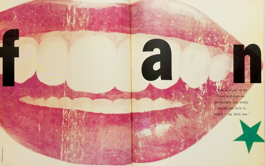 Развороты журналов Ray Gun также выполнены в гранж стилистике. Текстовые блоки располагаются случайно и пересекают друг друга, накладываясь на изображения.