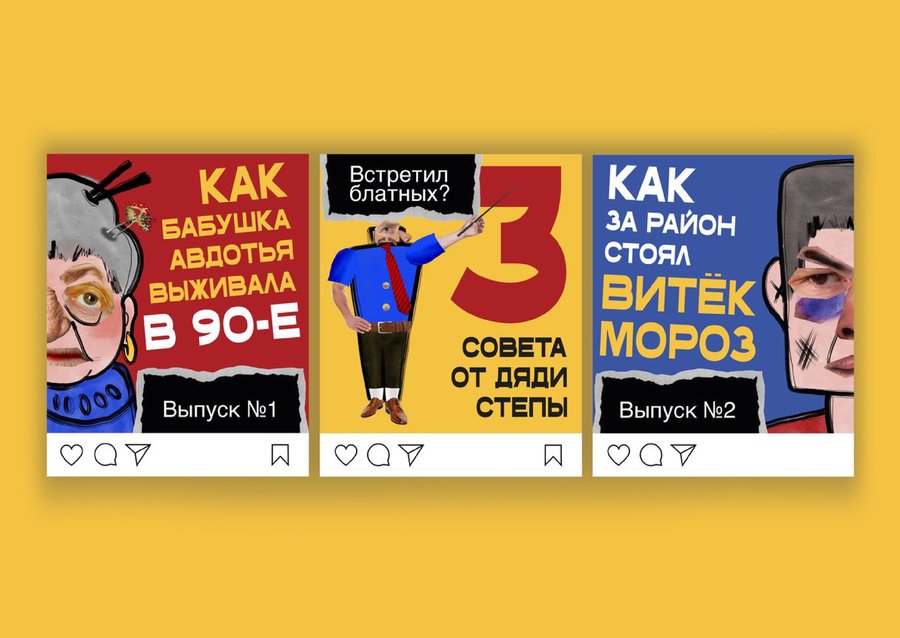 Посты для соц сетей были придуманы и сгенерированы ChatGPT. Промт: come up with 3 posts that the creators of a podcast about the wild 90s would post on social media and generate these images.