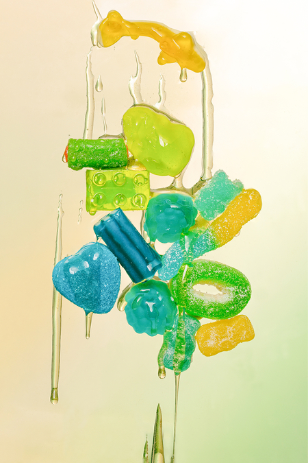 Проект строится на игре смыслов, где различные формы мармелада заменяют привычные предметы в узнаваемых, обыденных сценах. Это создает ироничные композиции, в которых также хочется подчеркнуть контрастные текстуры мармелада: прозрачную, матовую (засахаренную) и глянцевую (плотную).
