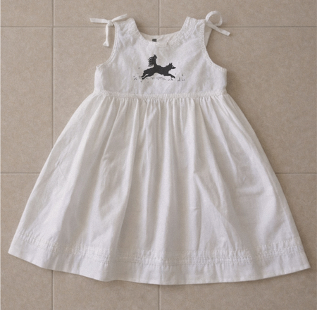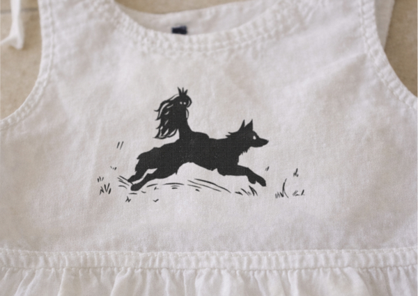 Выбор гравюр для печати обусловлен смыслом каждой из работ. Например, принт на детском сарафане раскрывается, как необузданная энергия, грядущие приключения и свобода.