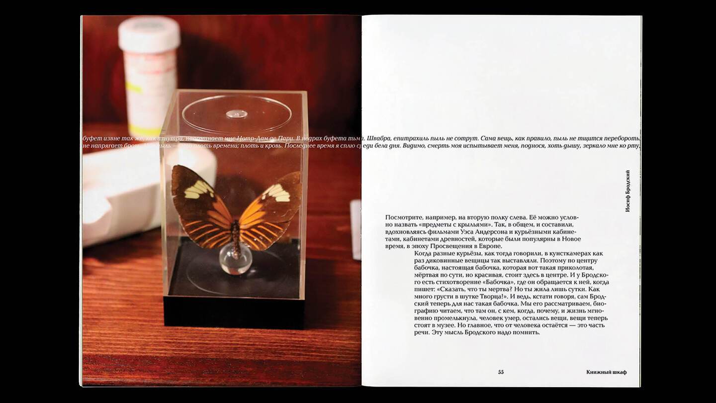 Ключ к пониманию выставки — стихотворение «Натюрморт», бегущая строка с его зацикленным текстом идет через всю книгу