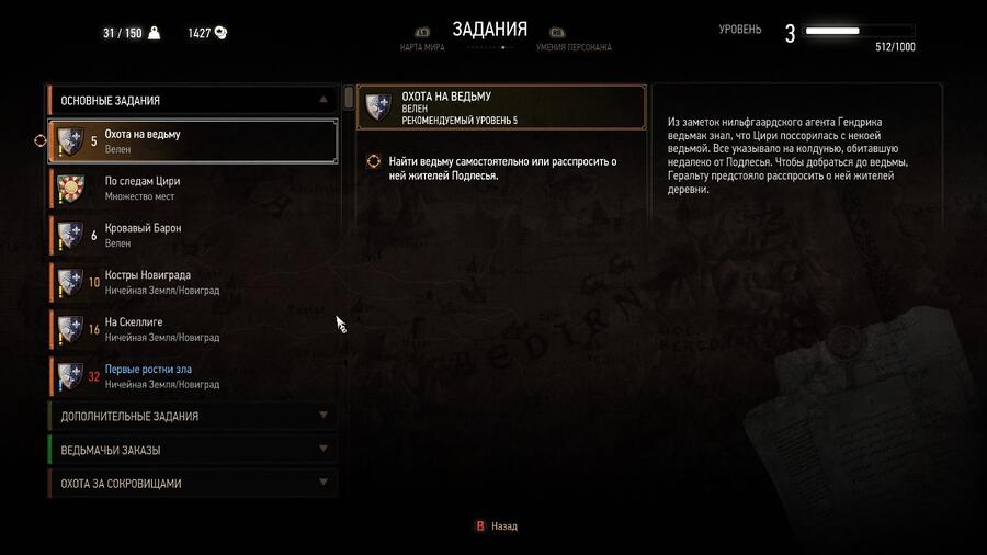 Квесты / Умения персонажа в Ведьмак 3: Дикая Охота (2015 г.)