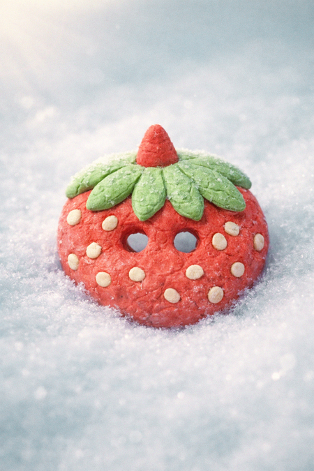 Sora.ai [обложка] promt: A quiet winter close-up of a single fruit-shaped button resting on fresh, untouched snow.