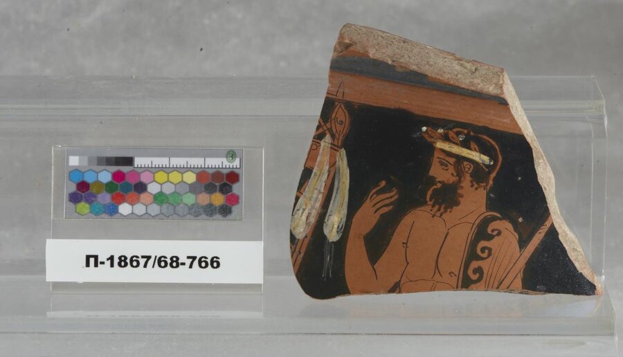 1. Бюст Зевса на орле. Эрмитаж. I в. до н. э. 2. Фрагмент кратера с изображением Зевса и треножника. Эрмитаж. V–IV вв. до н. э.