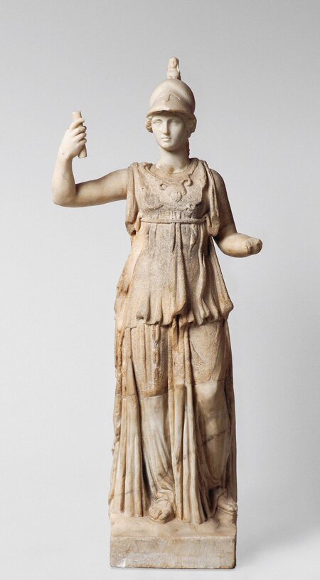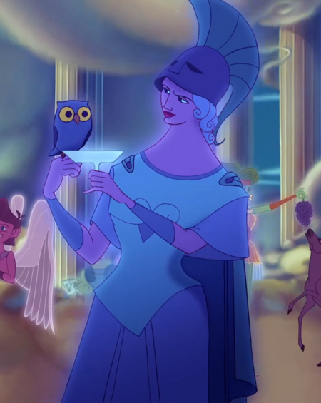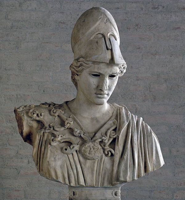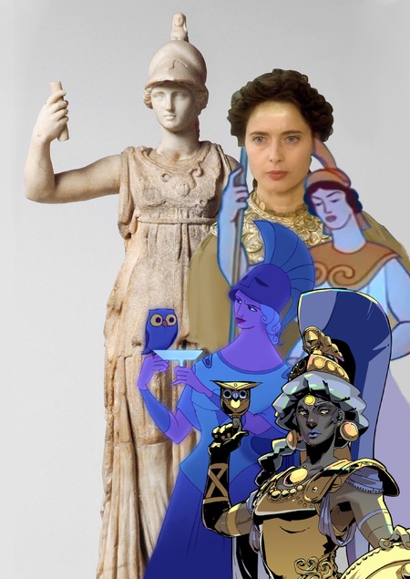Всегда Афину отличают её сине-серые глаза, шлем, эгида, статный вид и совы. Интепретации очень разняться, но основу её образа оставляют неизменной.