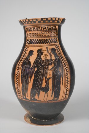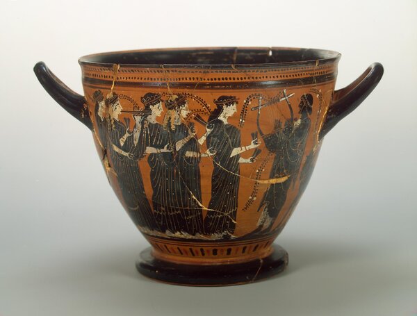 Аттический краснофигурный кратер, по краю плющевая ветвь. Эрмитаж. V в. до н. э.