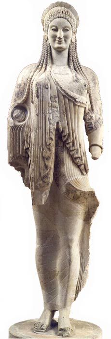 1.«Кора с миндалевидными глазами» Ок. 500 до н. э. Новый музей Акрополя 2. Высокая мраморная кора 520 г до н. э. музей Акрополя Афины