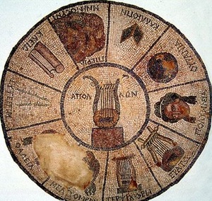 1. Греко римская мозаика Символы девяти Муз. Элида. 1 век до н. э. 2. Саркофаг муз (II в. н. э. Лувр, Париж)