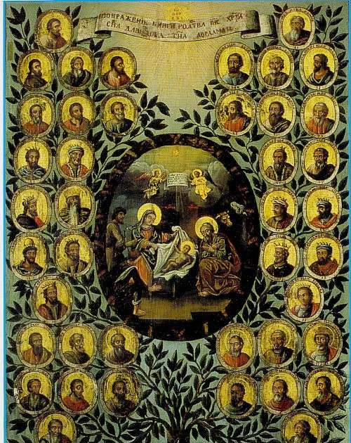 В священном писании Нового Завета содержатся два указания на родословную Иисуса Христа: первое в Евангелии от Матфея (1:1-17), а второе в Евангелии от Луки (3:23-38). Евангелист Матфей ведет линию рода от Авраама к Иосифу, тем самым указывая на царственное право Христа как «Сына Давидова». Лука же возводит родословие к Адаму по Марии, внутреннее различие описания родов у Евангелистов связано с тем к кому твои адресованы данные текста: Матфей писал для евреев, для которых было важно продемонстрировать, что Иисус кровный еврей и потомок Давида по рождению, то есть тот самый мессия из ветхозаветных пророчеств, перечисляет Матфей предков по линии сына Давида Нафана; Лука же писал Евангелие преимущественно для язычников, потому даёт более общую картину рода, дабы показывать, что Иисус не только Бог, но и человек, Лука предков перечисляет по Соломону).