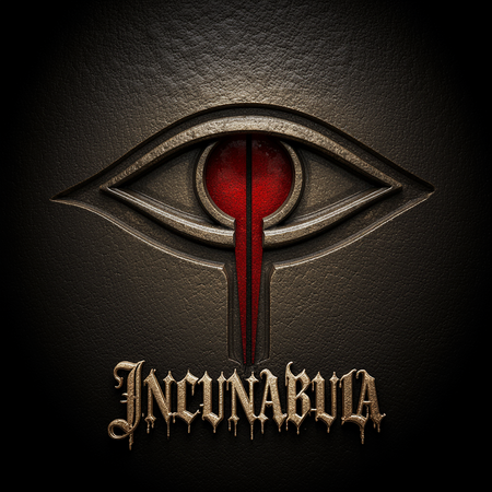 Промт для 3D логотипа: 3D rendering of a brand logo design for «INCUNABULA». Symbol: The central element is a highly stylized, minimalist human eye with a single, vertical deep red pupil. The eye symbol is clean and geometric, suggesting an ancient mark or warning. Typography: The word «INCUNABULA» is placed beneath the symbol. The font is a heavy, ornate vintage Serif typeface. The text is colored the same Deep Red as the pupil, contrasting sharply with the background. Composition: The logo is embossed or rendered in a textured Dark Grey/Subtle Tarnish metal on a solid, pitch-Black background. Subtle, dramatic cinematic lighting should highlight the texture of the metal and the glow of the red elements.