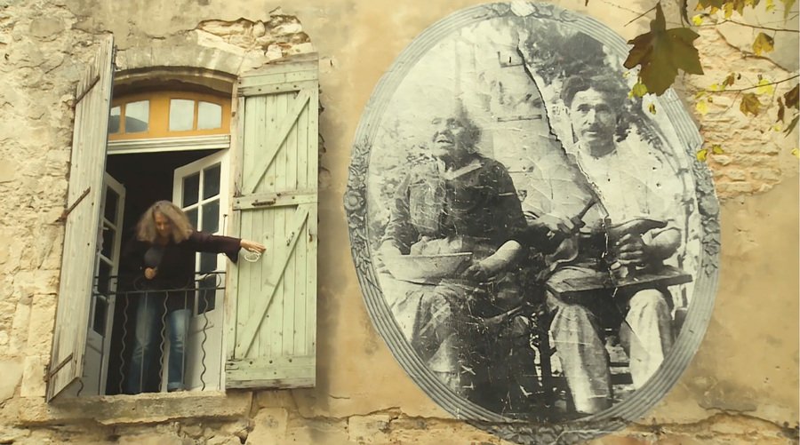 Архив также используется как реконструкция кинопроцесса. Варда делится закулисной историей, вставляя забавные снимки с художником JR. Этот приём как прямое продолжение работы с фотодневником. Однако если старые фотографии — это память о прошлом, то новые –творения настоящего времени. Так, проявляется индивидуальное за счёт отношений с художниками, и общественное в процессе сближения. Растущая дружба становится важной «сюжетной линией» общности, как и истории людей на стенах.