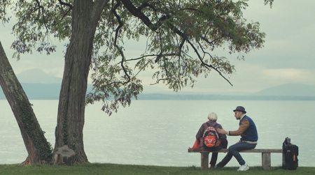 И иногда, находится кто-то, кто разделит этот путь :) Здесь происходит деформация мотива уходящего в мотив сидящих спиной. Удивительным образом, зрители становятся со-созерцателями (т.е. общество наблюдающих). Если одинокий уходящий герой подчеркивает экзистенциальное одиночество, то двое сидящих спиной утверждают форму связи.