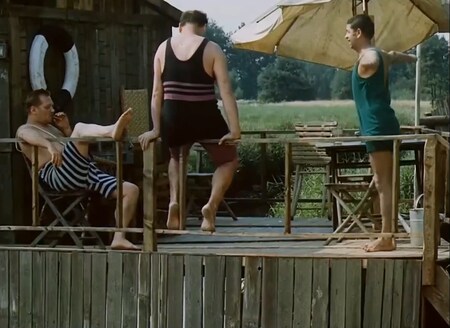 Героев часто показывают в привычных для них, повседневных сценах, как в фильме «Капризное лето». В начале киноленты мужчины стоят на понтоне, прыгают в воду и дурачатся в ней посреди солнечного дня.