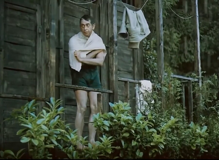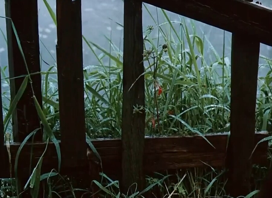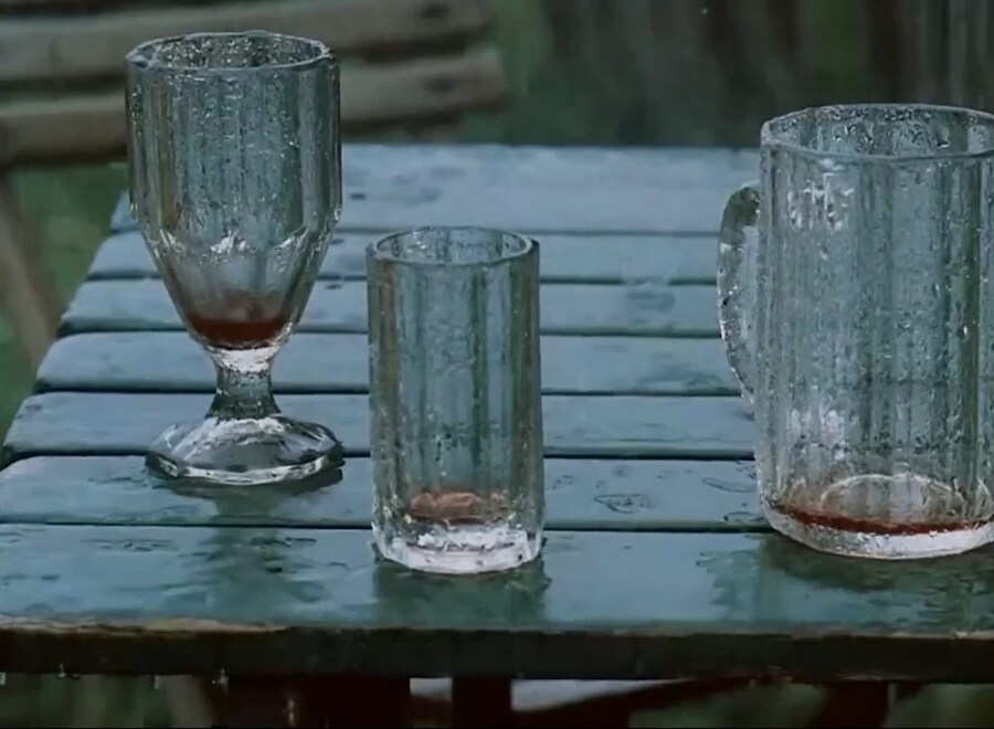 Медленная смена кадров, где камера большая часть изображения статична, а действия и изменения происходят из-за дождя. «Капризное лето», Иржи Менцель, 1968