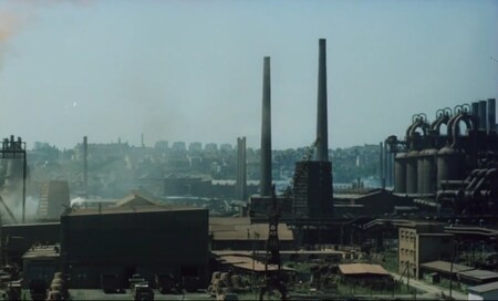 Блеклость сменяется яркостью только когда на завод приезжает группа высокопоставленных лиц: участки завода преображаются, но на время — до тех пор, пока служащие в костюмах не уезжают, забирая с собой яркие плакаты, мебель, новую одежду.
