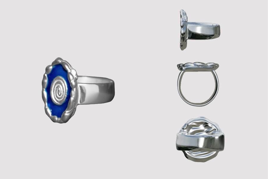 Выбор материала UV-смола: серебристая (корпус) + ярко-синяя (вставки) Требования: высокая прочность, устойчивость к микротрещинам, возможность полировки до зеркального блеска