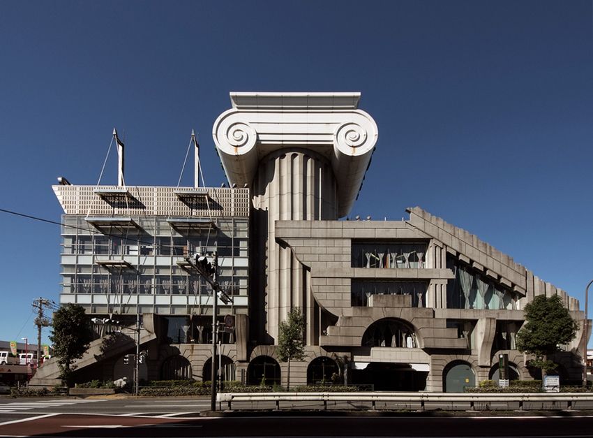В 1990 году японский архитектор Кэнго Кума создал здание компании Mazda, отсылающее к древнеримской архитектуре. Центральным элементом композиции стала гигантская колонна с ионическим капителем, внутри разместились атриум и лифтовая шахта. По обе стороны от неё расположены современные корпуса из стекла и бетона, которые имитируют арочные конструкции, характерные для классической архитектуры. Таким образом, Кума создал ироничное постмодернистское здание, сочетая классические архитектурные формы с современными, а также играя с масштабами и формами.