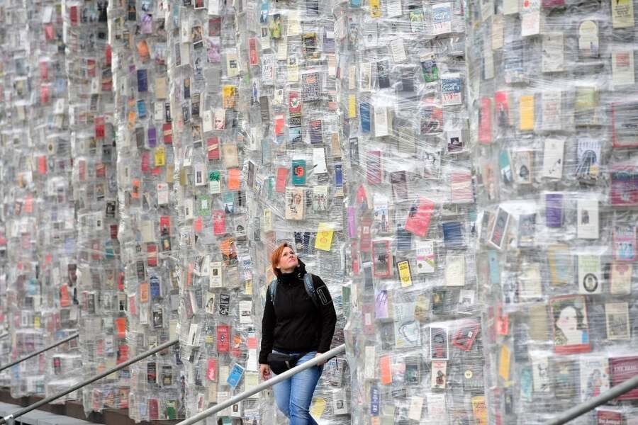 Обращаясь к древнегреческой классике, Марта воссоздает образ Парфенона из афинского Акрополя, иронично интерпретируя детали. Она сочетает величественный облик классической архитектуры с современными материалами, тем самым создавая многослойную смысловую конструкцию, которая не только отражает культурные и исторические коды, но и активно вовлекает зрителя. Таким образом, «Книжный Парфенон» становится не просто архитектурной метафорой, а настоящим памятником свободы слова.