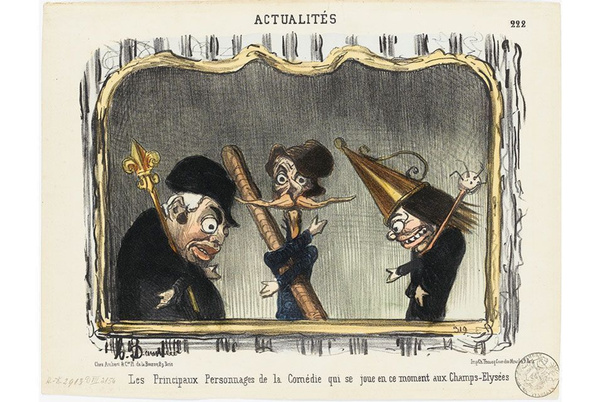 Домье знаменует начало современной политической карикатуры. Он выступает как республиканец от имени мелкой буржуазии и рабочего класса, которые совершили Июльскую Революцию 1830 года