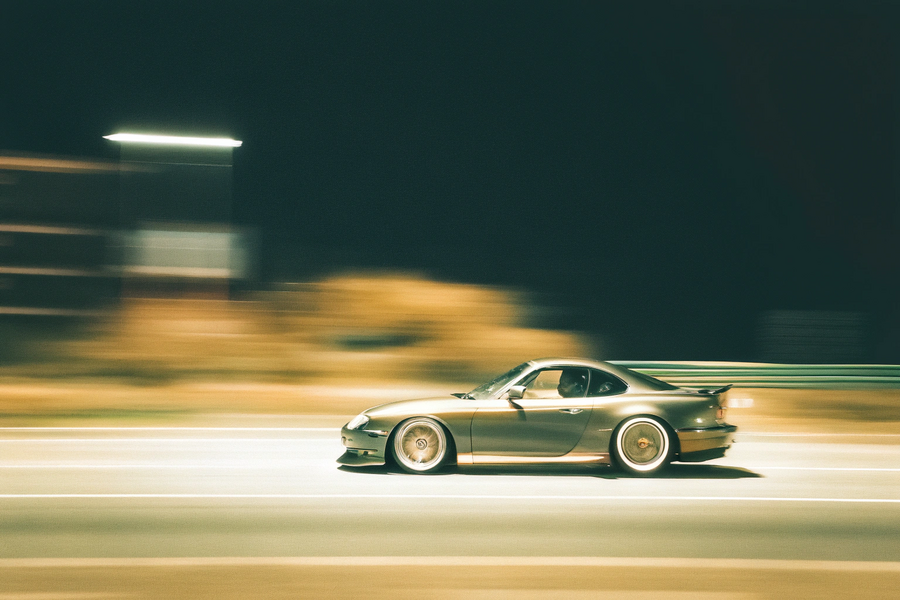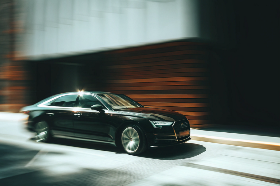 Обложка к проекту:. Abstract motion blur of a premium sports Audi, sense of speed and acceleration, minimal composition, blurred lights and reflections, dark background, focus on movement and luxury, modern abstract style.