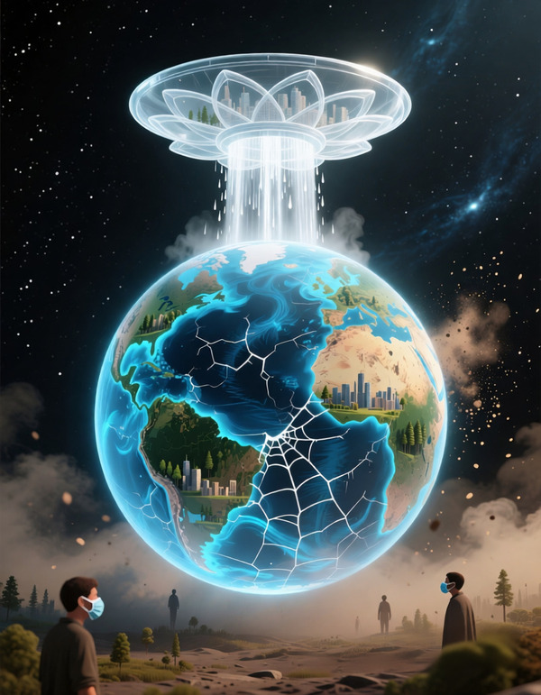 Промпты используемые в Qwen для генерации изображений: 1. The cover for a project about the quality of air on the planet without text 2.I need 6 clouds, classic as in the graphic design of these colors