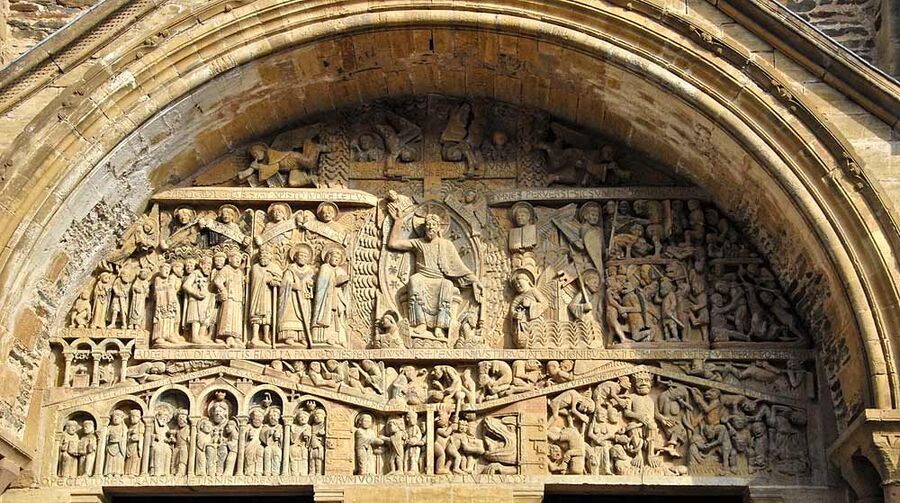 Скульптурный тимпан «Страшный суд».Западный портал Кафедрального собора Сен-Лазар. Отен, Франция.1120–1135 года.Мастер Гислеберт.