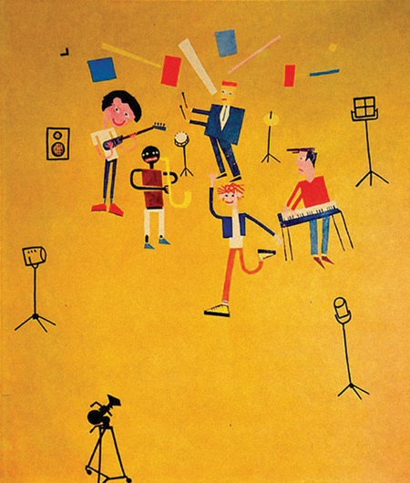 Например, в «Собрании» Малевича и плакате к фильму «Асса» можно наблюдать плоский цветной фон и также плоские, ритмично расставленные по нему фигуры разной плотности и размера.