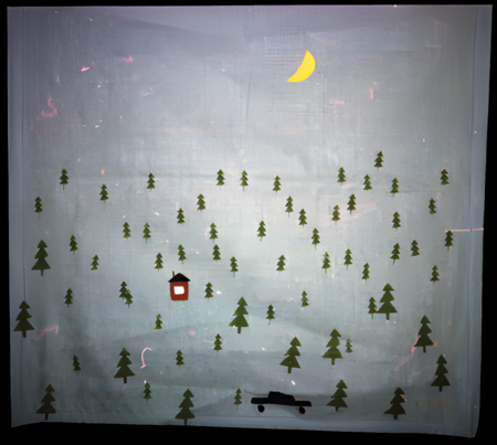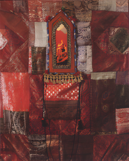 Характерная для Тимура Новикова техника — тканевые коллажи -, лейтмотив линии горизонта в его творчестве и контрасты большого и малого способствуют широкому использованию заливки одним цветом больших областей.
