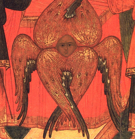 Описание Серафимов в Книге пророка Исаии конкретно («Вокруг Него стояли Серафимы; у каждого из них по шести крыл: двумя закрывал каждый лице свое, и двумя закрывал ноги свои, и двумя летал»), поэтому их часто и легко изображают. У ангелов всегда есть шесть крыльев и лико, иногда также встречаются человеческие конечности