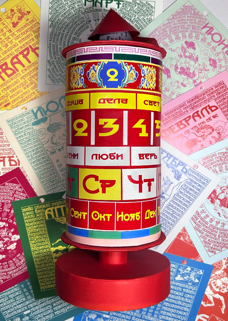Второй календарь представлен в виде буддийского молитвенного барабана.