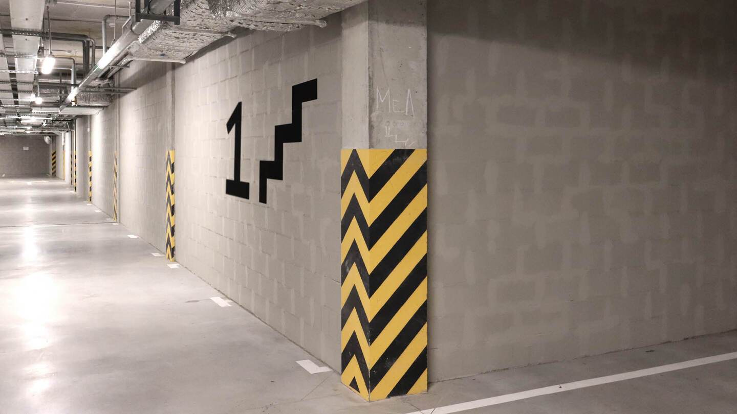 Для настенных указателей была выбрана матовая плёнка цвета RAL 5004, нанесённая методом плоттерной резки. Это обеспечивает максимальную идентичность цвета, быстрое и лёгкое нанесение, а также ровные и чёткие линии.