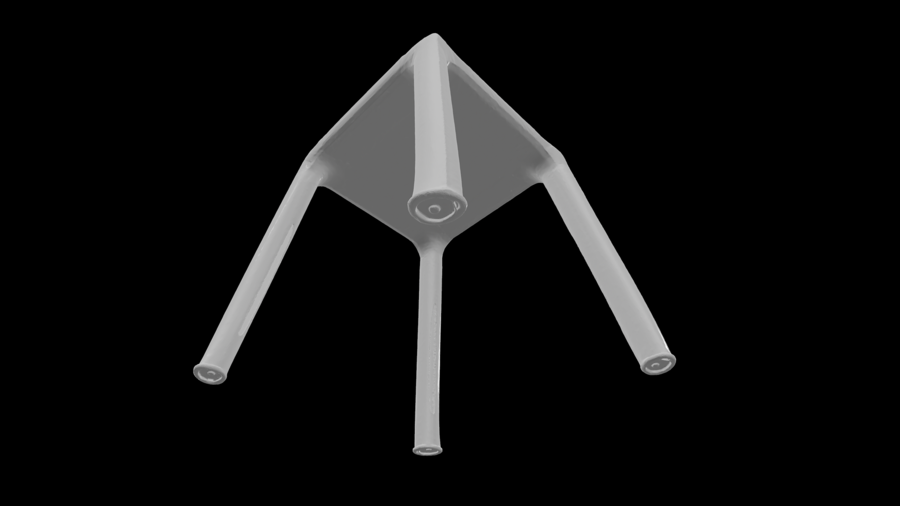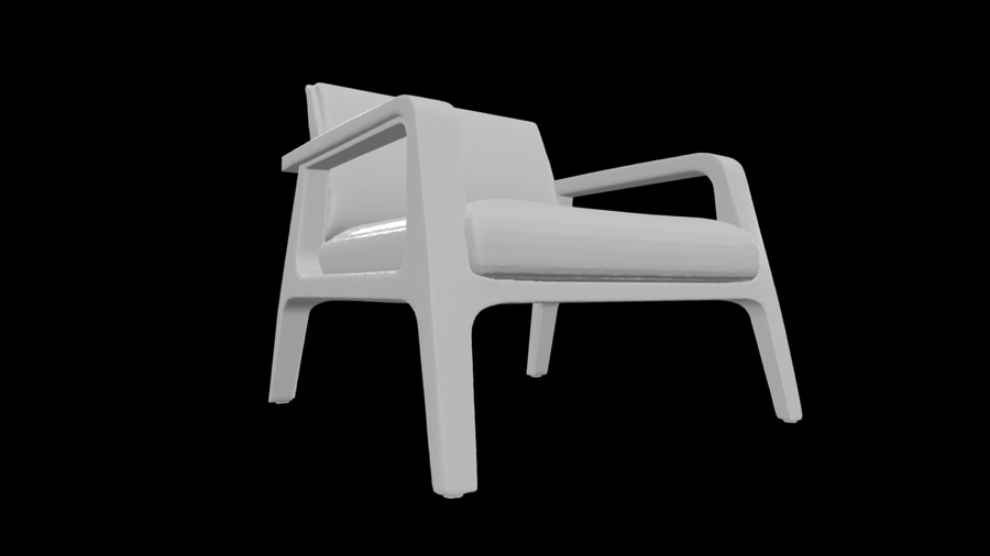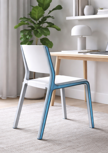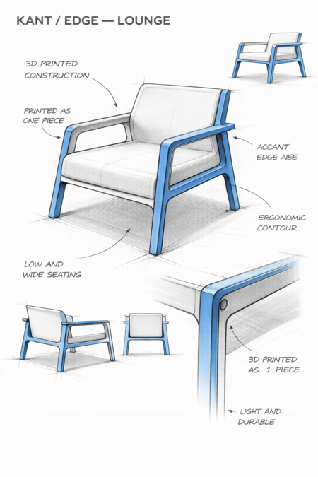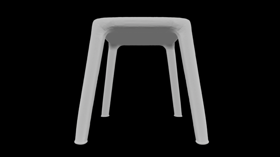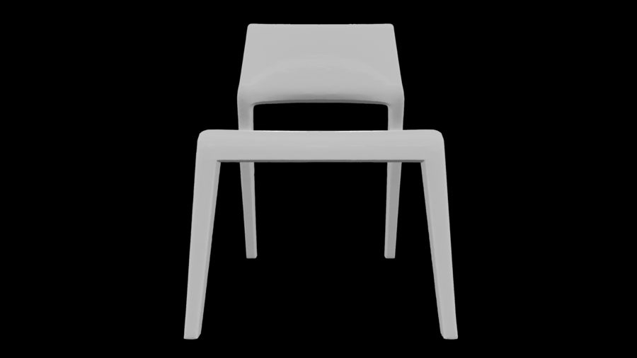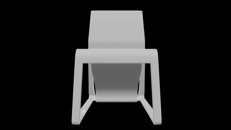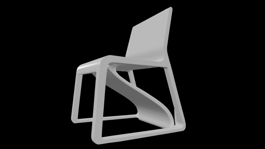 Кант подчёркивает вертикаль и объединяет сиденье, опоры и подножку в единую конструкцию. Стул рассчитан на высокие нагрузки и полностью печатается одной деталью.