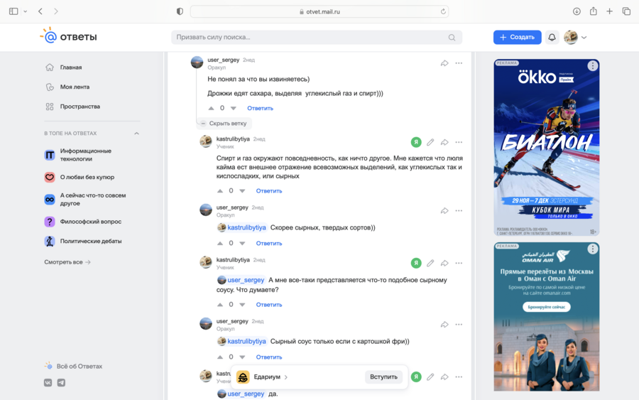 Перформанс также стал исследованием «устаревшей» платформы-форума, где люди задают вопросы и помогают друг другу или просто делятся мнением. Этот механизм кажется мне бессмысленным и непонятным, поэтому мне было интересно понять, кто сейчас сидит на этой платформе, почему заводит диалог с незнакомыми людьми и пытается помочь.