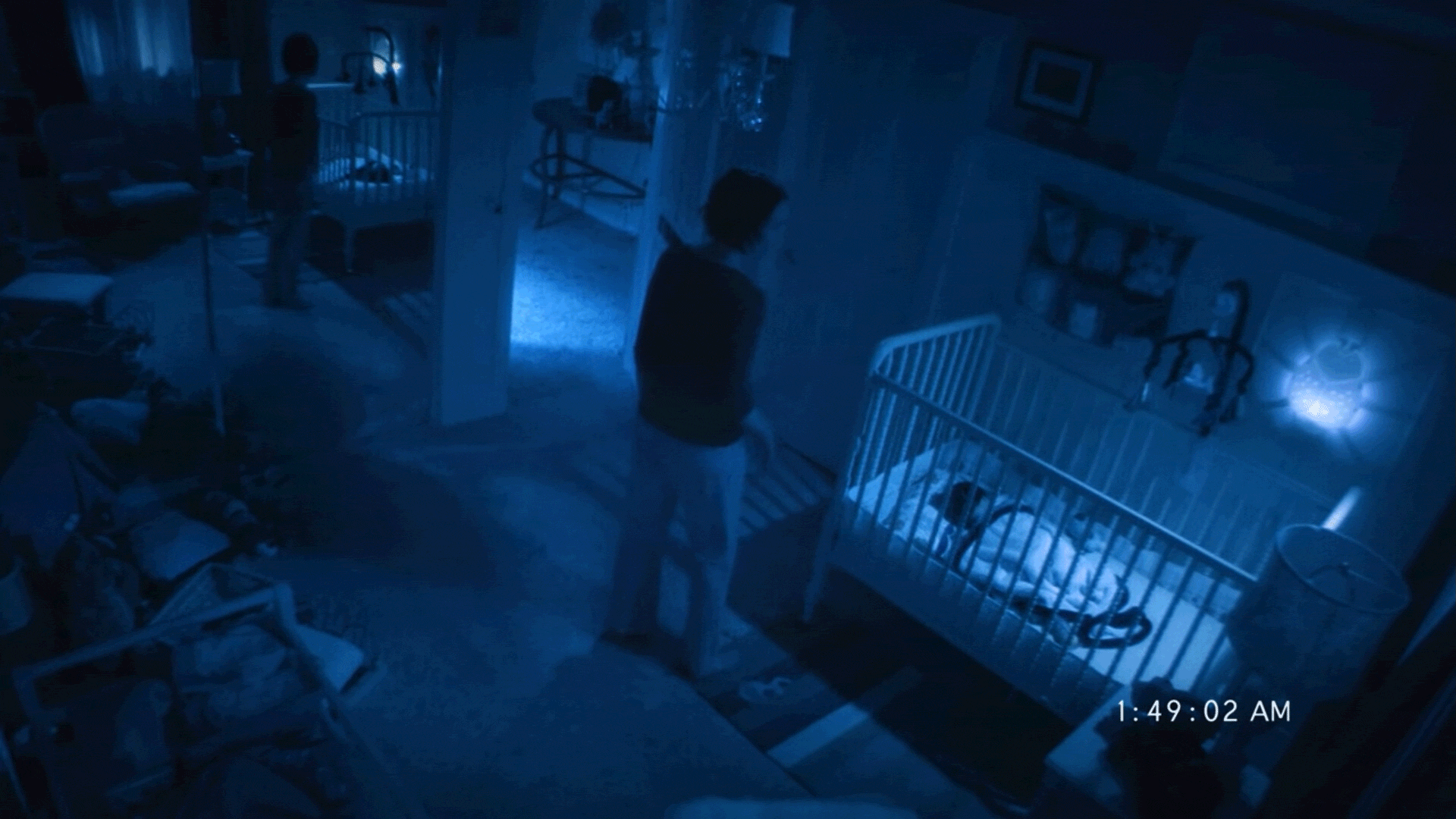 Установка камеры наблюдения. Кадры из фильма «Паранормальное явление» (2007), реж. Орен Пели