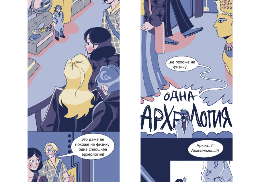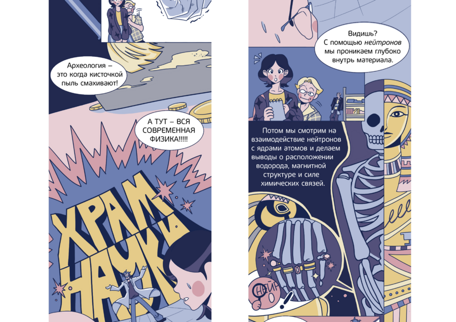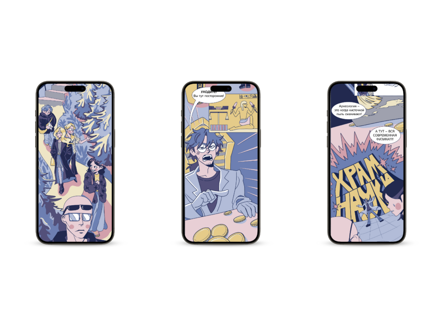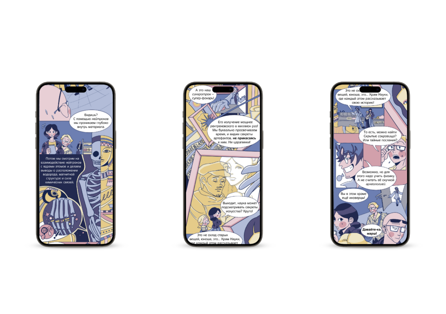 Наш проект является частью большого веб-комикса, который рассказывает о работе одиннадцати направлений Курчатовского Института. Задачей нашей команды было рассказать про «Исследования с использованием синхротронного излучения, нейтронов и в условиях сильных световых полей».