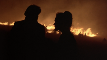Так, когда история достигает своей кульминации, вместо эмоций героев на их лицах мы видим лишь отображение этих эмоций через окружающее — горящие поля и тучи саранчи, пожирающие урожай, метафору разрушения отношений.