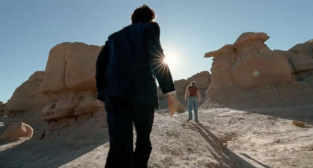 Подобный прием Малик использует и в своих более авангардных фильмах — «Древо Жизни» (далее ДрЖ) и «Рыцарь кубков» (далее РК). В ДрЖ на протяжении повествования несколько раз появляется эпизод, где герой Шона Пенна блуждает по пустыне и в итоге выходит к морю. Этот эпизод, на первый взгляд, никак не связан с сюжетом напрямую. Здесь путешествие героя по пустыне не означает непосредственно его физическое пребывание там, а является визуальной метафорой, средством выражения внутренней потерянности героя и его эмоционального пути внутри себя.