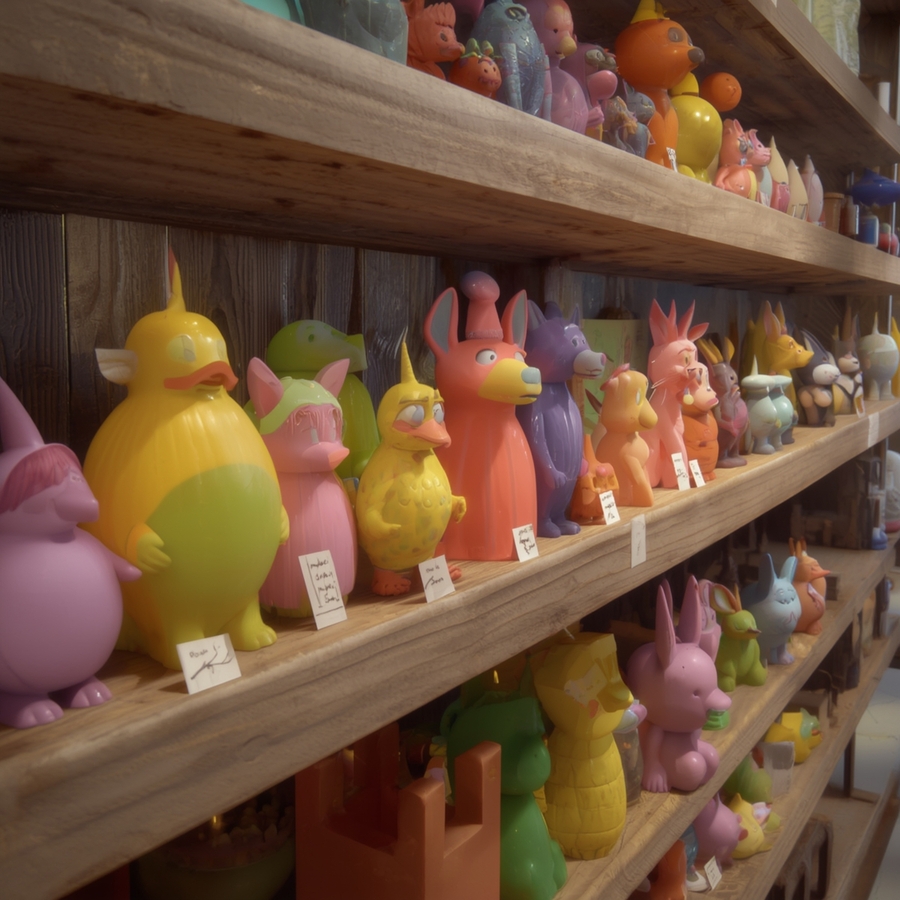The homepage features: - A hero section showcasing a curated collection of whimsical character-shaped candles (like animals, fantasy creatures, or abstract figures). - A clean navigation menu with categories like «Fantasy Characters», «Animal Lovers», «Mythical Beings». - Product cards with high-quality photos of the candles on minimalist pedestals. - A call-to-action button in a solid red color. - A testimonial section with a subtle blue background.