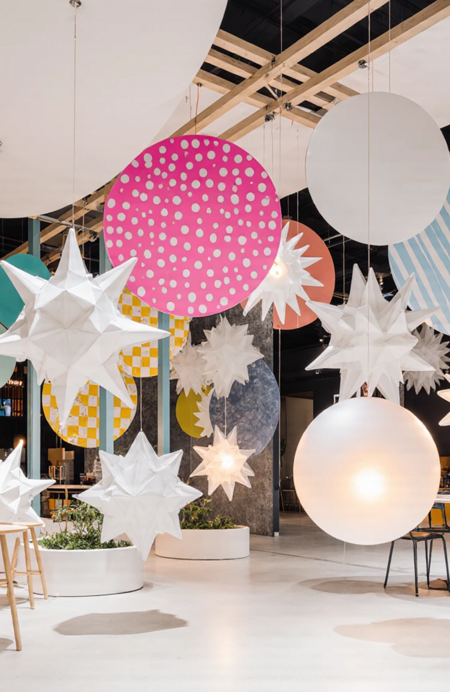 Зал творчества — здесь можно создать воздушного змея в формате рисунка, который становится частью большого общего холста, объединяющего индивидуальные истории в единое произведение.