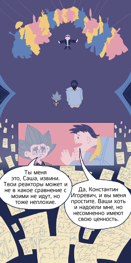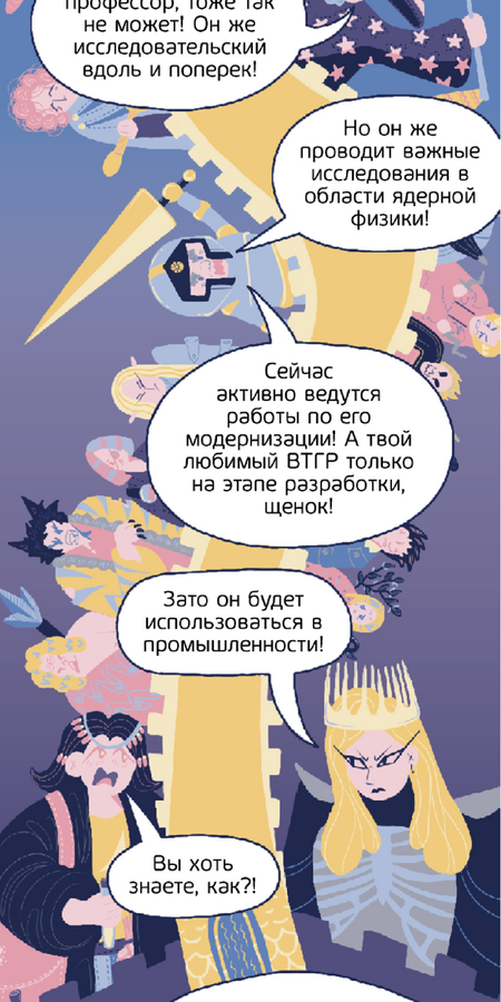 Этот проект — часть комикса о направлении «Развитие ядерных технологий для создания атомной энергетики нового поколения». В нем раскрываются многие интересные подробности о разных видах атомных реакторов через спор двух ученых, превращенный в магическую дуэль.