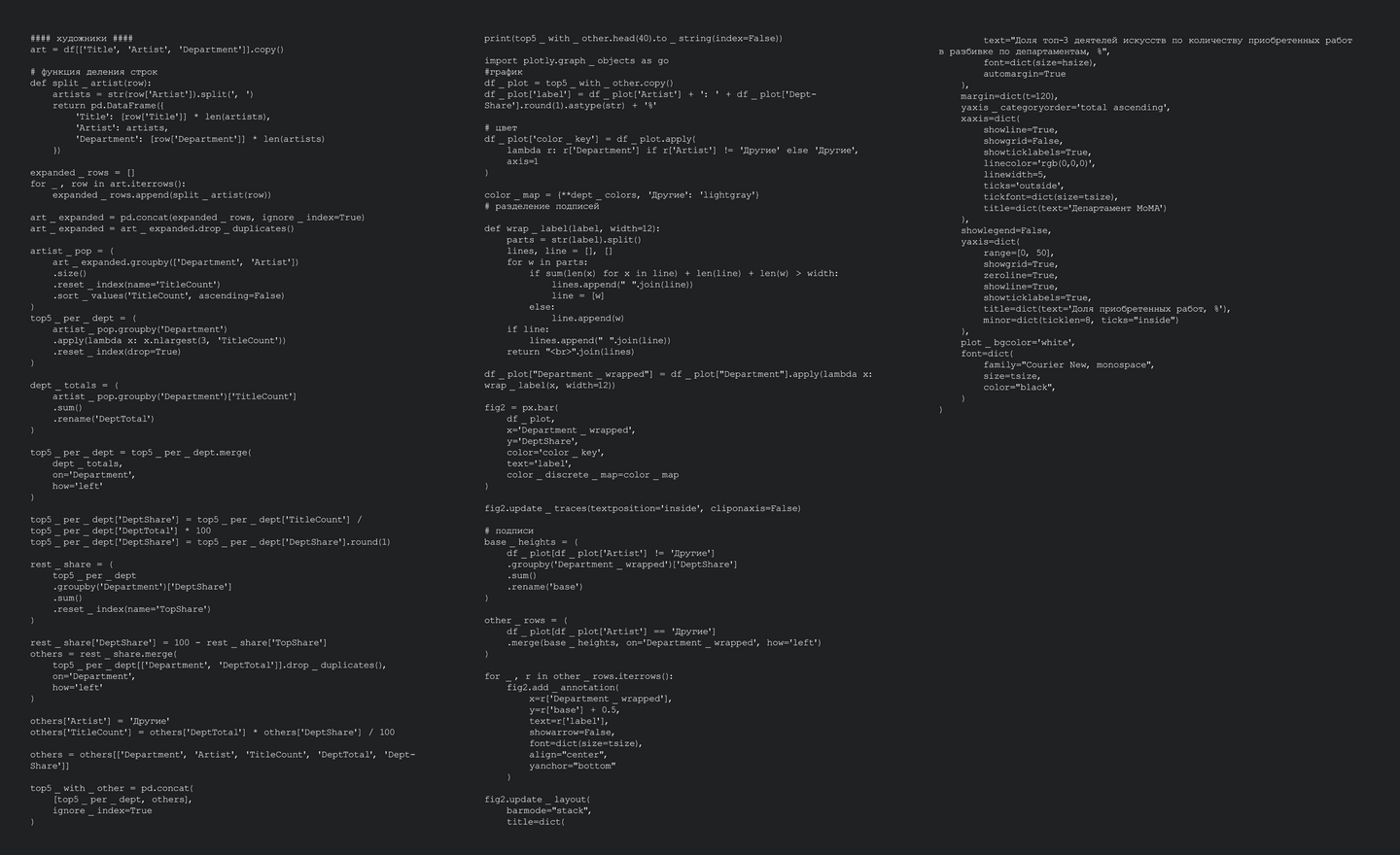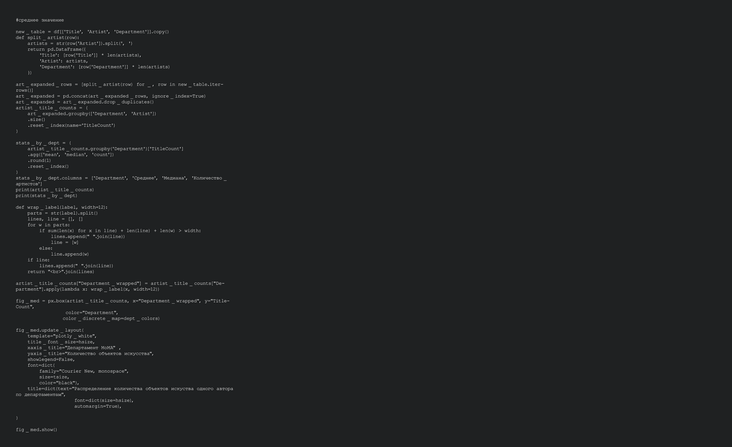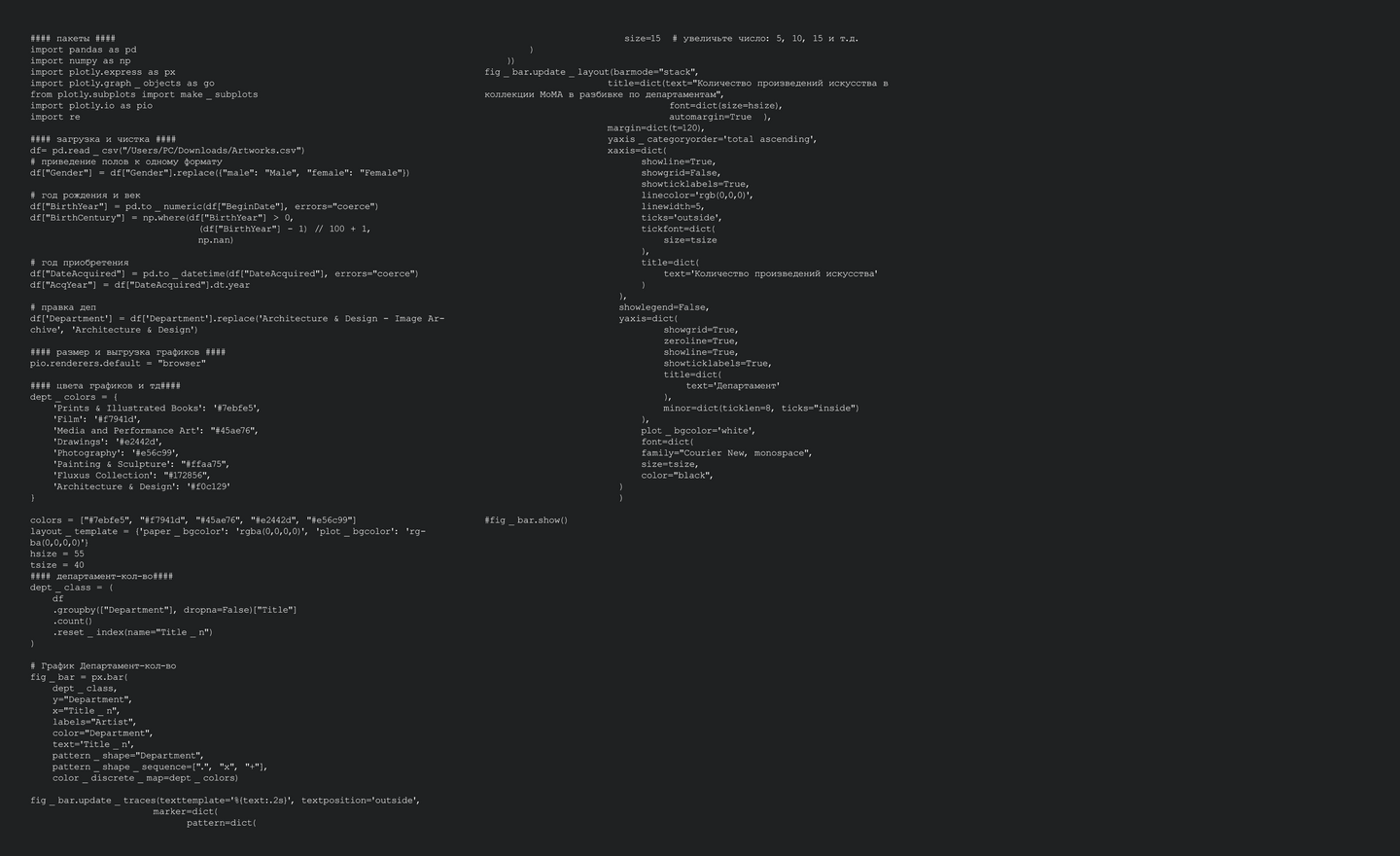 Мне было интересно проанализировать коллекцию музея, поскольку MoMA — один из ведущих музеев современного искусства в мире.