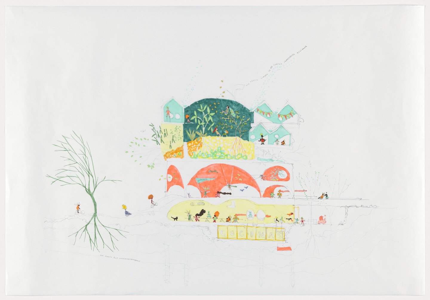 Примеры работ в коллекции MoMA: Andrés Jaque. Reggio School, Madrid, Spain, 2024 / Dance of the Peasants. Marc Chagall, 1942 / John Rieben, John Massey. Chicago Has 2 Great Zoos, 1965-66